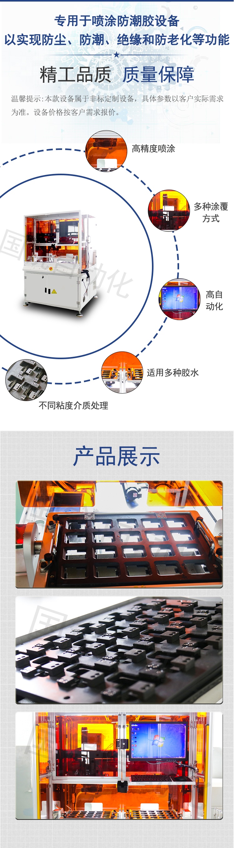 - 高精度噴涂:采用計算機控制程序,可實現(xiàn)多軸聯(lián)動,并配備攝像頭定位跟蹤系統(tǒng),能精確控制噴涂區(qū)域,確保防潮膠準確涂覆到特定位置。