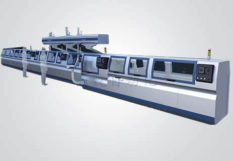 此機臺多工序、串聯(lián)式自動生產(chǎn)流水線,整機由三臺桁架機械手,多組伺服機構(gòu)并行完成物料工位移轉(zhuǎn)。