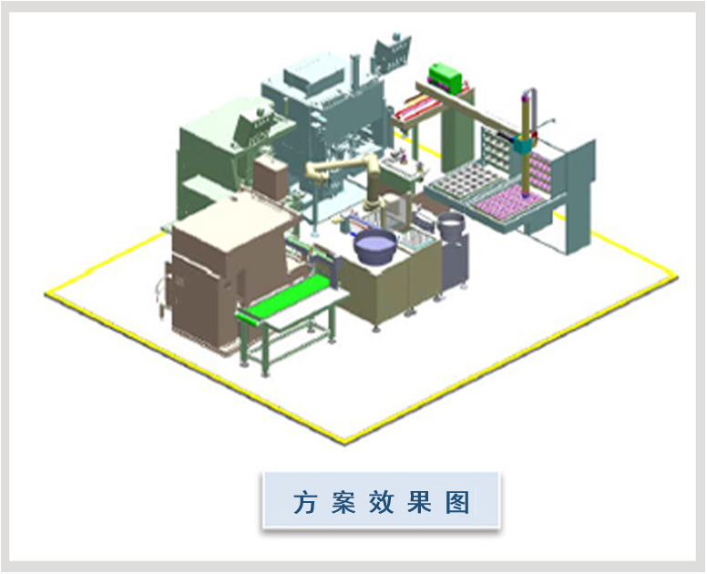 可實(shí)現(xiàn)多個(gè)塑料件的熔接以及軸套和彈簧等配件的組裝、檢測等功能。該線還可實(shí)現(xiàn)自動(dòng)上下料,僅需人工周期性補(bǔ)料即可完成作業(yè),節(jié)省人力50%。