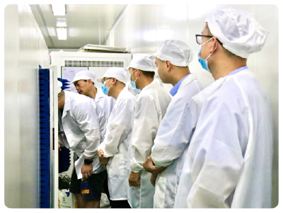 此次到訪我司的還有英恒電子質(zhì)量主管、硬件主管、結(jié)構(gòu)工程師和測試工程師。我司總經(jīng)理和業(yè)務(wù)經(jīng)理帶領(lǐng)他們參觀公司設(shè)備,并對已投產(chǎn)的雷達(dá)自動(dòng)組裝檢測生產(chǎn)線、雷達(dá)暗箱、車載攝像頭組裝檢測生產(chǎn)線進(jìn)行詳細(xì)介紹。