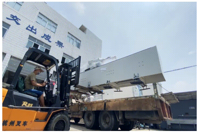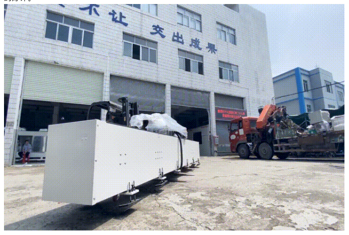 由于整線設備眾多,本次設備運輸?shù)跹b由專業(yè)運輸團隊配合我司工程技術人員完成,經(jīng)過一上午的共同努力,共運送了四車次才把所有設備全部運抵客戶所在車間。