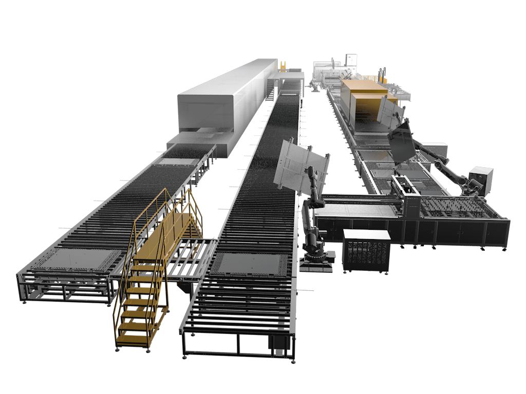 分享整線集成了機(jī)器人、CCD視覺(jué)檢測(cè)、PLC控制、MES管理系統(tǒng)等先進(jìn)技術(shù)模塊,實(shí)現(xiàn)自動(dòng)下料、合板鉚接、釬焊、氦檢、平面度/尺寸檢測(cè)到總裝的全流程自動(dòng)化生產(chǎn)。